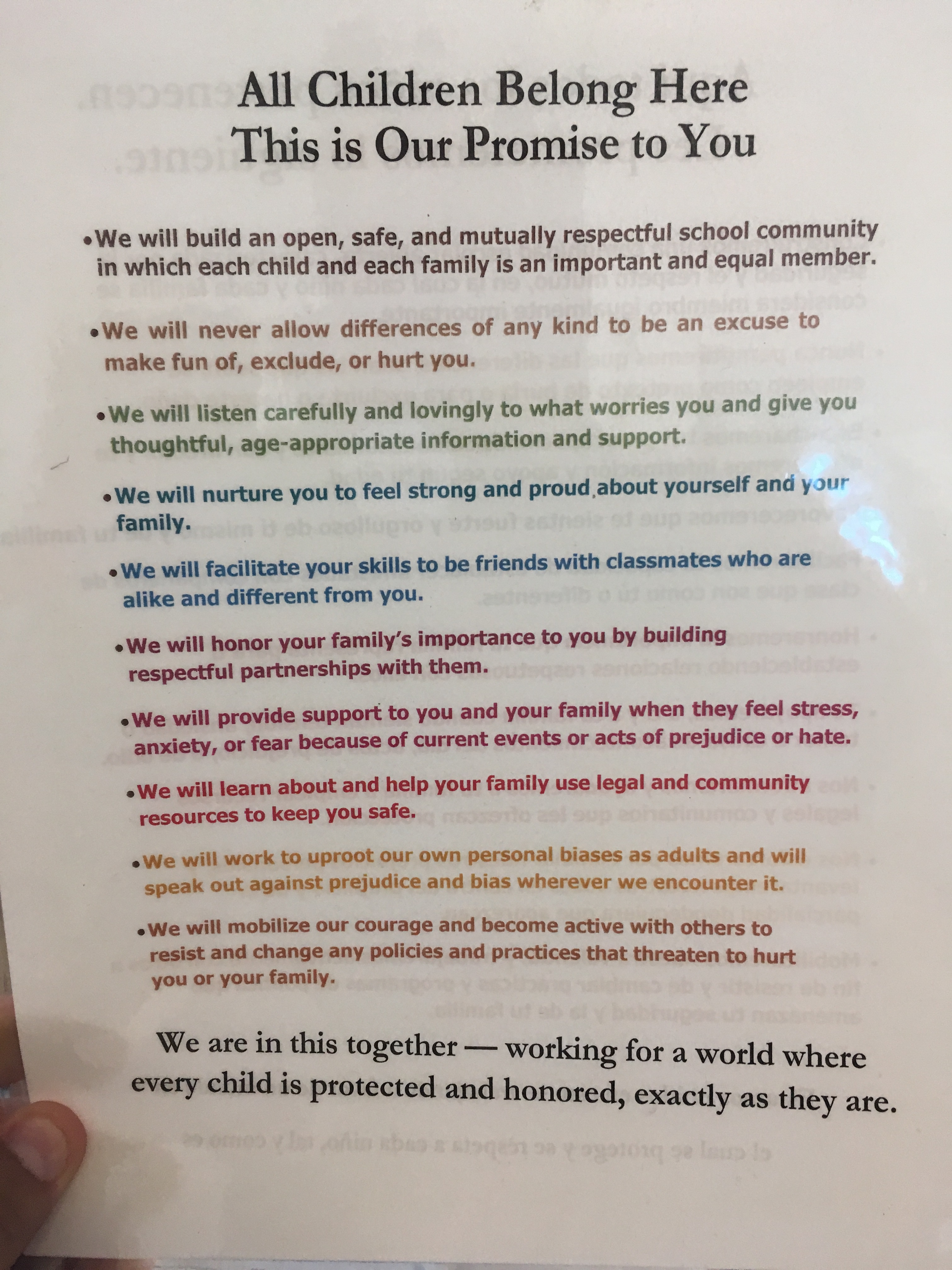 It is affirming to see the way children are welcomed here and the promise that the staff make to the kids, as seen by the 10 “We Will” statements below,